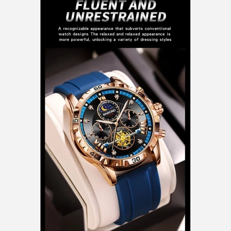 ساعت مچی پسرانه مردانه اسپرت بین باند binbond با بند رابر ضد تعریق آبی
