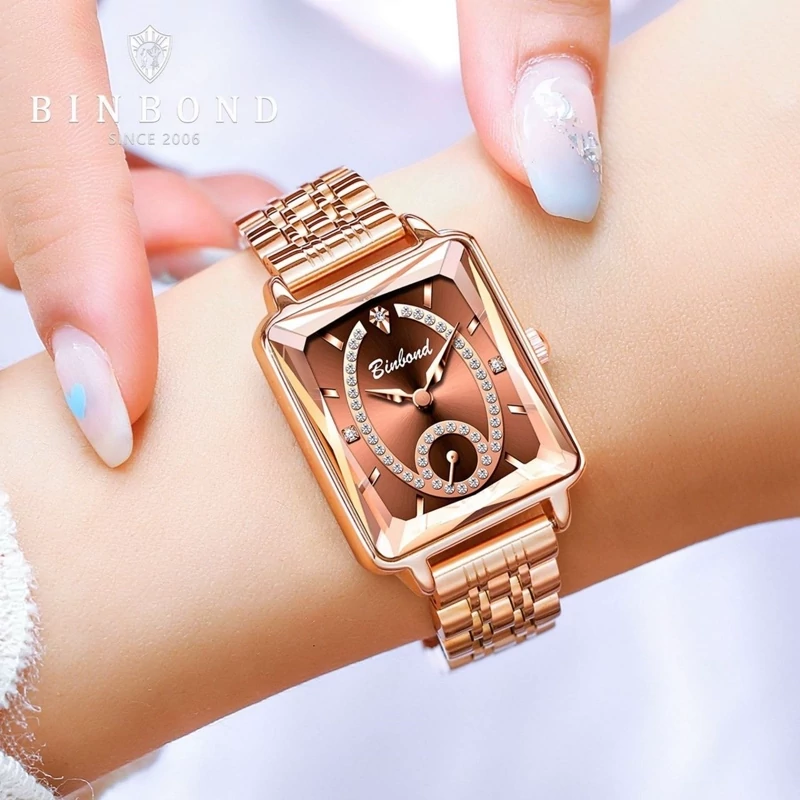 ساعت مچی زنانه شیک BIN BOND ♤TRENDY STYLE 2025 《highe quality》 ⌚️بین باند مدلی نو زنونه اورجینال شرکتی ایام هفته دارای روزشمار مقاوم دربرابر آب بند استیل قفل استیل پروانه ای موتور کوارتز شیشه الماس صفحه شب نما خاص وجذاب