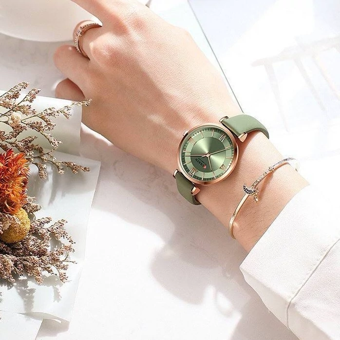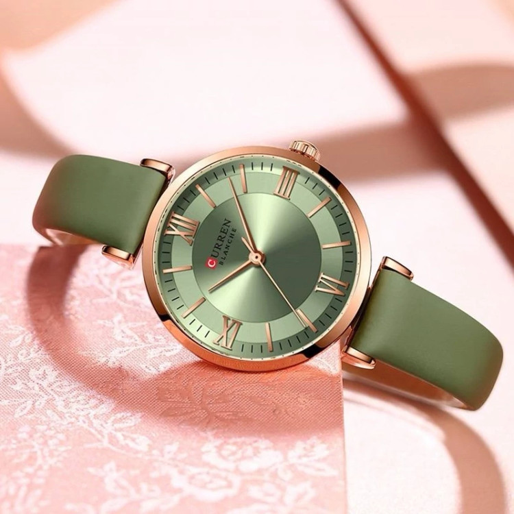 ساعت مچی اورجینال کارن دخترانه زنانه curren سبز زیتونی کمرنگ