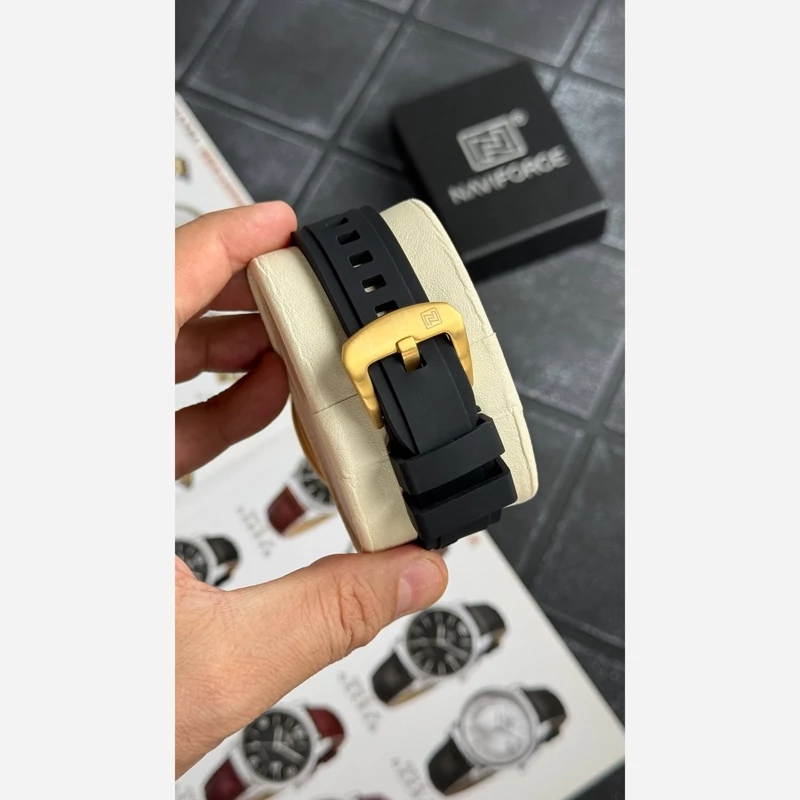 ساعت مردانه اورجینال نیوی فورس مشکی طلایی Naviforce NF8063 (سه موتوره)