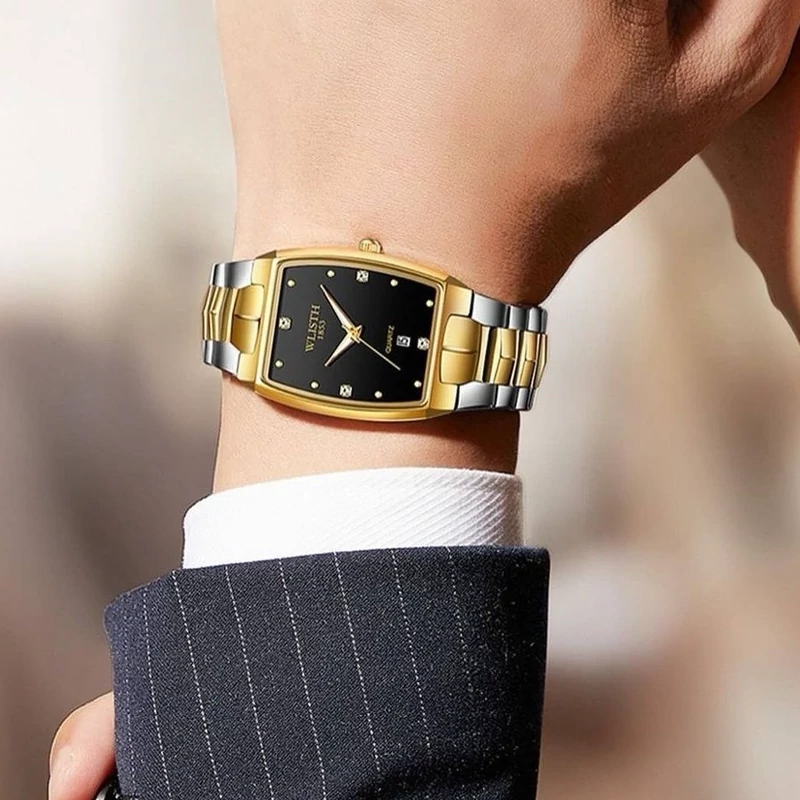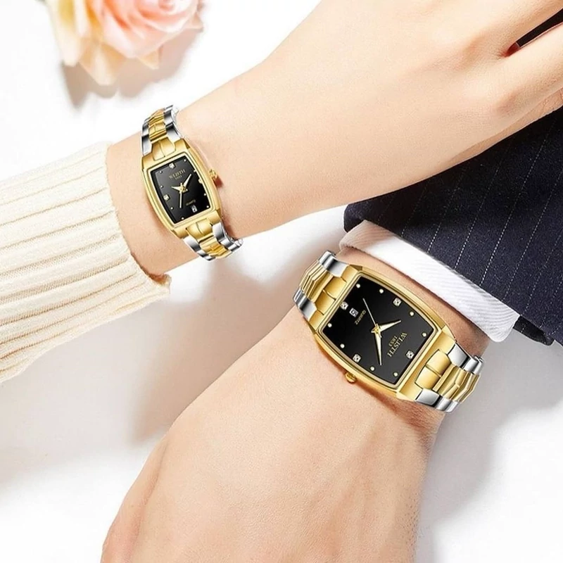ست ساعت زوج کلاسیک ساعتی خاص مناسب عزیزانی که طرفدار استایل کلاسیک هستند مردونه و زنونه ✅کار شرکتی ✅برند wlisth ✅صفحه مشکی ✅بند سیلور طلایی ✅قاب طلایی ✅موتور کوارتز ✅قفل کلیپسی ✅ضد آب ✅طراحی جذاب ✅دارای روز شمار 🛍️ همراه با جعبه کادویی چوبی
