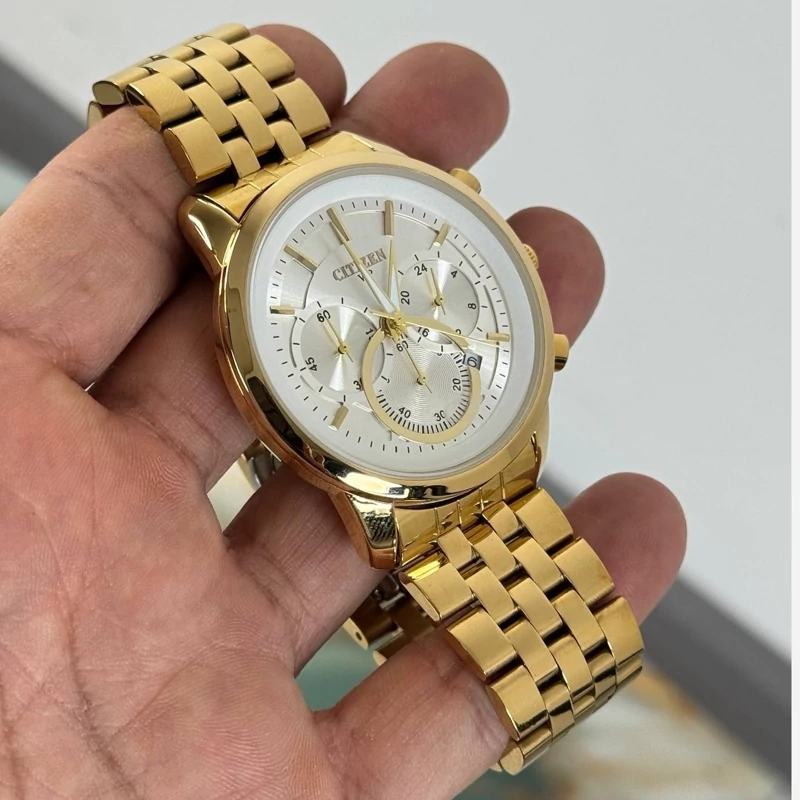ساعت مچی مردانه سیتیزن vip سه موتور فعال کرنوگراف بند استیل طلایی