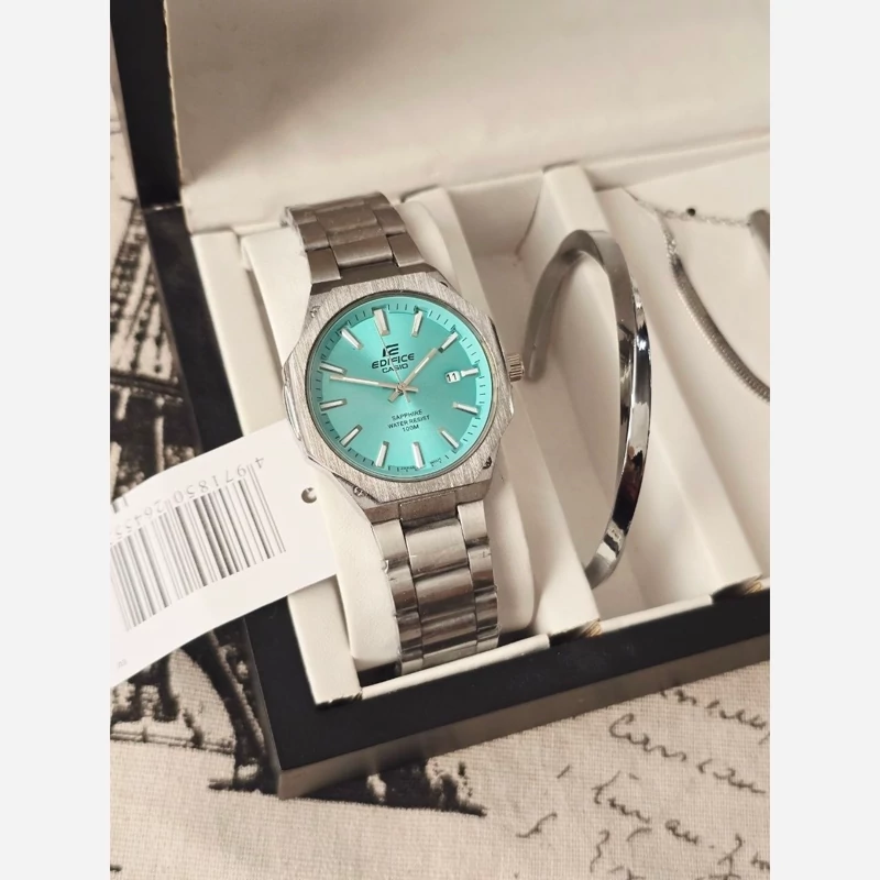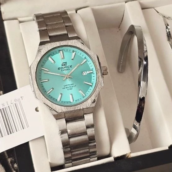 ست مردانه مناسب هدیه برای آقایان 🎁🎁 ساعت کاسیو مردانه تقویم فعال و بنگل و گردنبند و حلقه رنگ ثابت و با کیفیت بهمراه جعبه کادویی و باتری یدکی