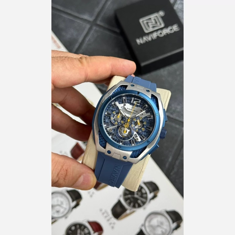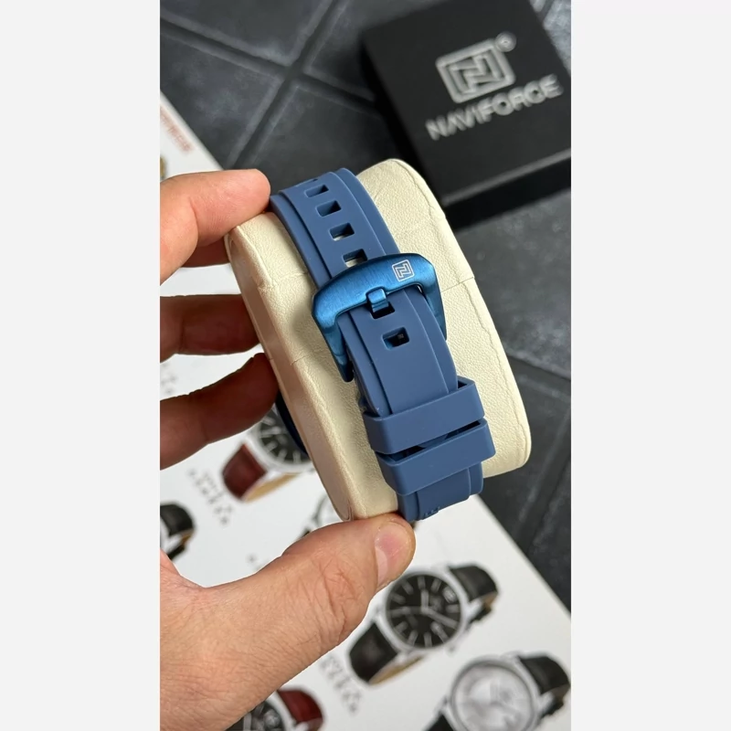 ساعت مردانه پسرانه نیوی فورس Naviforce اورجینال سه موتور فعال بند رابر آبی سرمه ای