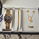 ساعت مچی زنانه سیکو دو تقویم فعال صفحه مشکی با دستبند و انگشتر و گوشواره و گردنبند