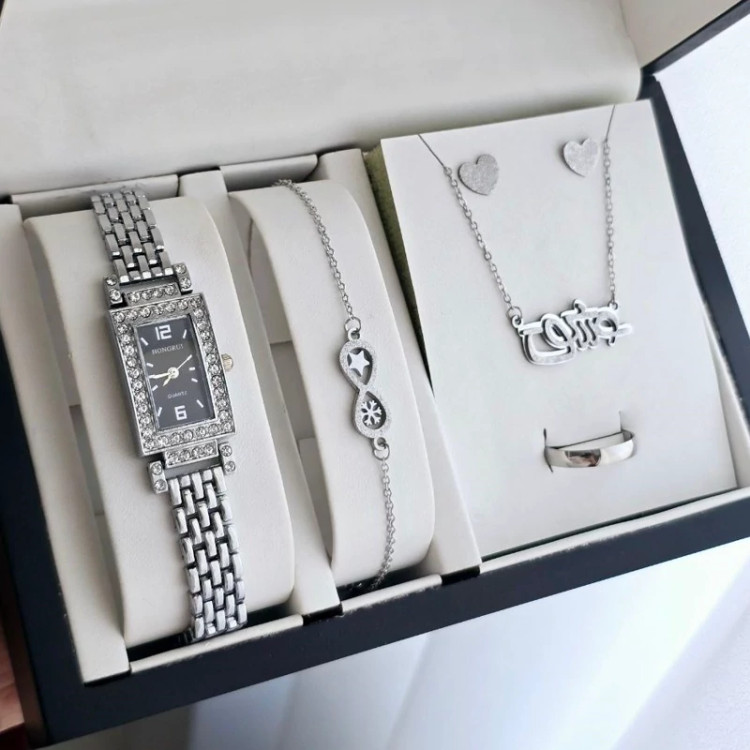 ست ساعت مچی زنانه با دستبند و گردنبند و گوشواره و انگشتر