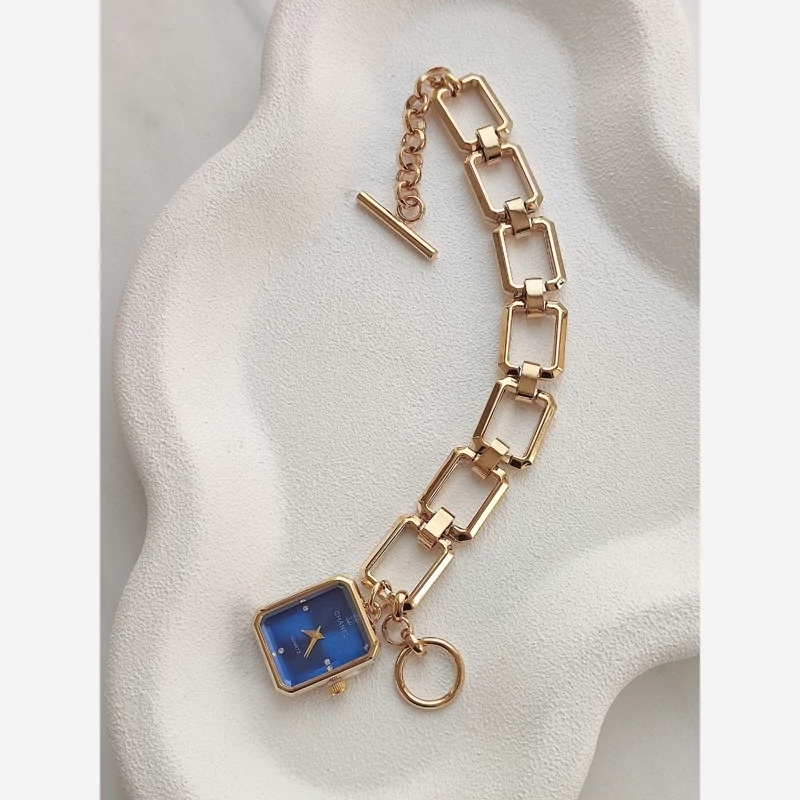 ساعت مچی زنانه شنل chanel ✅️ بند استیل طلایی ✅️ با رنگ ثابت ✅️ صفحه رنگی زیبا آبی ✅️ خاص و با کیفیت ✅️ قفل تی T همراه با جعبه هدیه مناسب ساعت 🎁