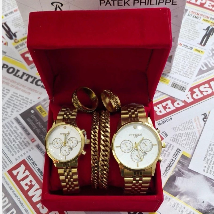 ✅️شامل دو ساعت مردانه و زنانه طلایی برند سیتیزن وی آی پی vip +