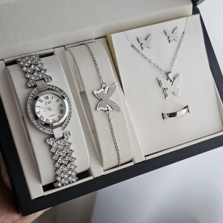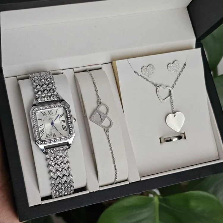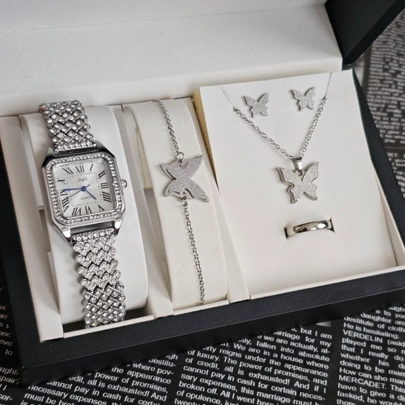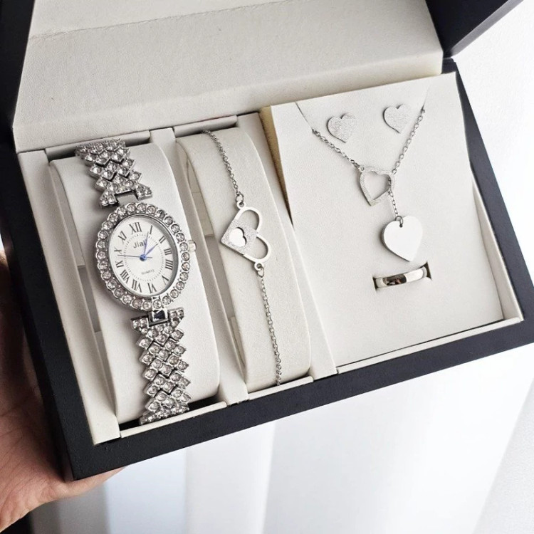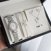 ست ساعت زنانه با دستبند و گردنبند و گوشواره و انگشتر