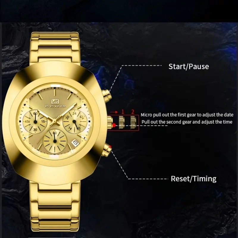 ساعت مردانه VAVA VOOM ✅2025 《highe quality》 ☆☆☆☆ ⌚️برند شرکتی مناسب آقایان کرنوگراف مقاوم دربرابر آب ضخامت 12میل شیشه معدنی الماسی قطر صفحه 48میل دارای روز شمار بند استیل صفحه شب نما برند اورجینال قفل دو پروانه موتور کوارتز رفرانس 2513 خاص وجذاب