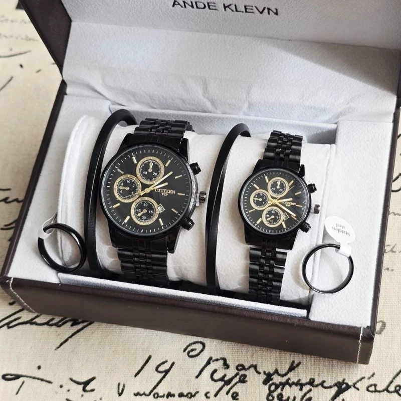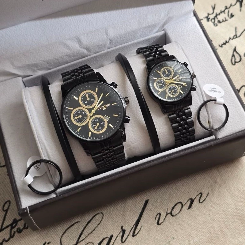 ✅️ست ساعت مردانه و زنانه استیل مشکی سیتیزن vip