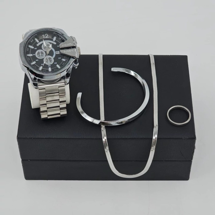 ساعت مردونه دیزل ست یا دستبند و گردنبند و انگشتر نقره ای