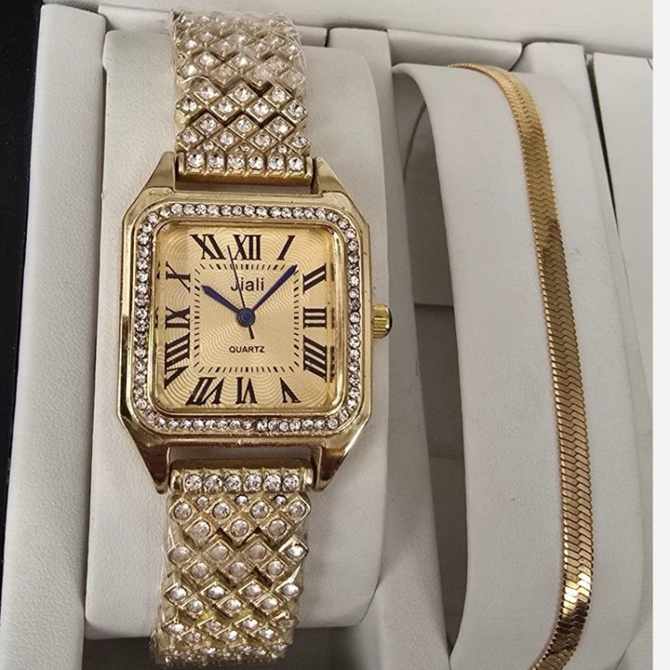 ست ساعت زنانه شامل ساعت مچی با بند نگین دار
