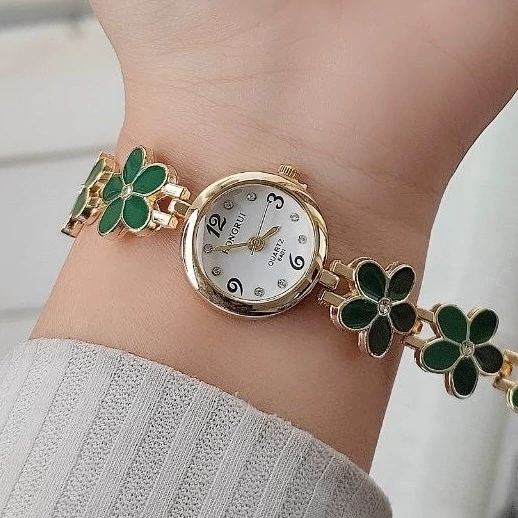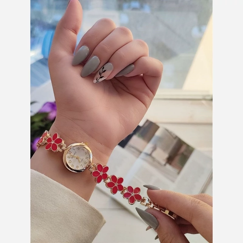 یه ساعت خاص و خوشگل برای خانم ها و دختر خانم ها ساعت مچی با طرح گل بابونه برند HONGRUI استیل و رنگثابت با قفل دستبندی زیبا و با کیفیت
