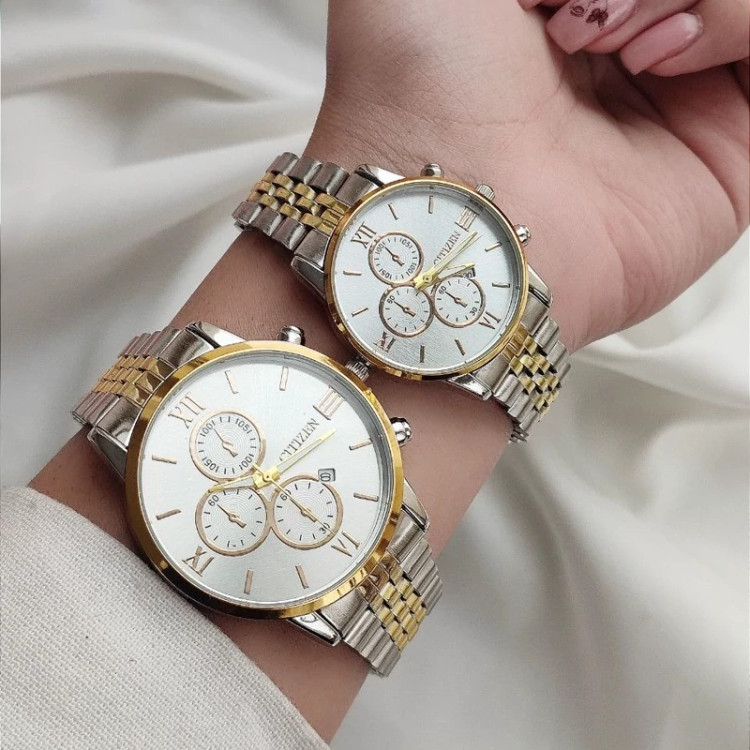 ساعت ست مردونه زنونه نقره ای طلایی با تقویم فعال