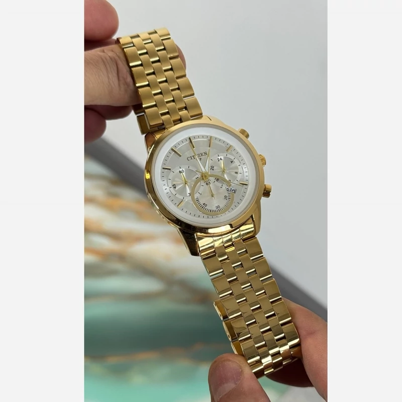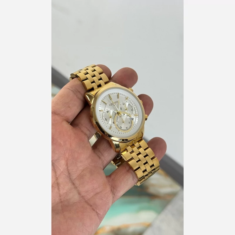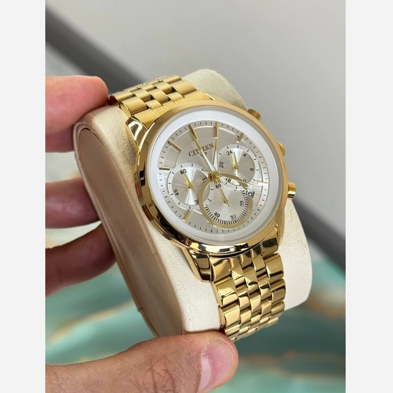 ساعت مردانه سیتیزن vip سه موتور فعال کرنوگراف بند استیل طلایی