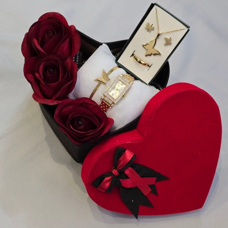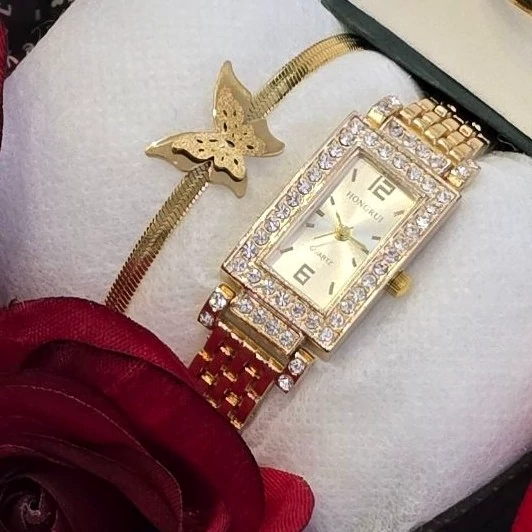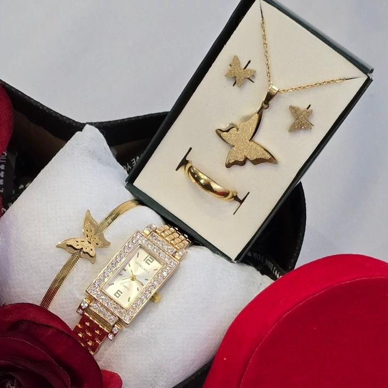 باکس هدیه پک کادویی زنانه ساعت و دستبند و نیم ست پروانه طلایی
