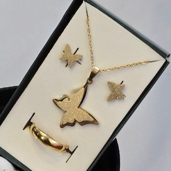 ✅️ همراه با دستبند ست طلایی طرح پروانه