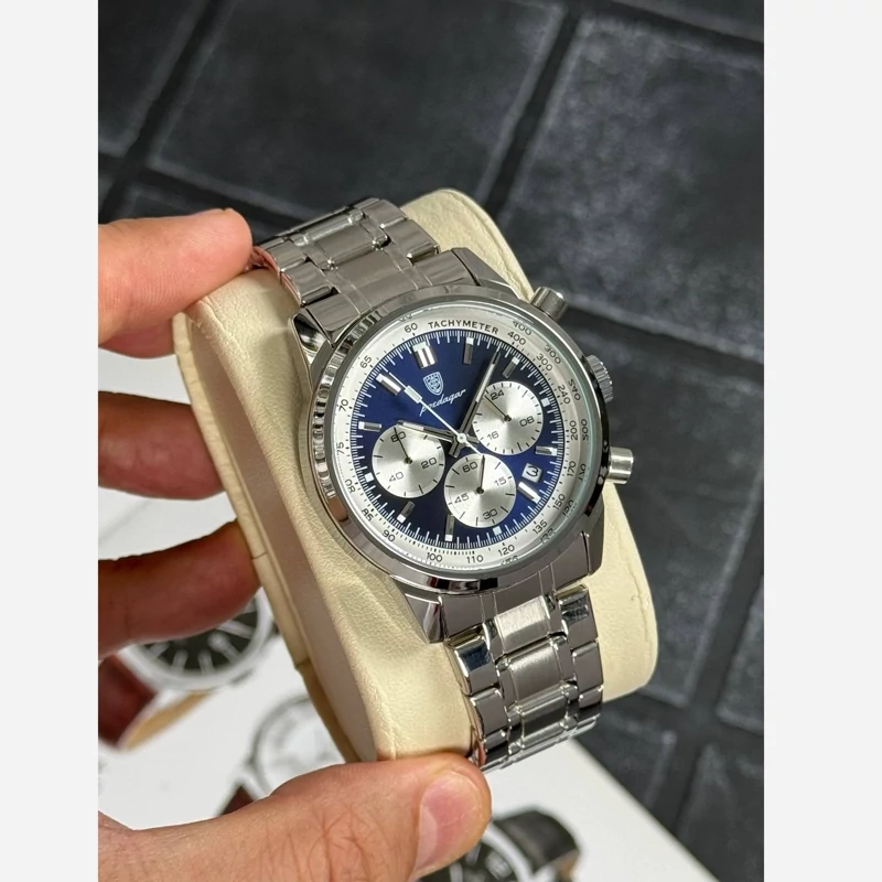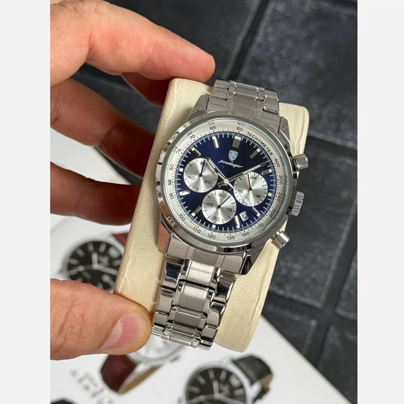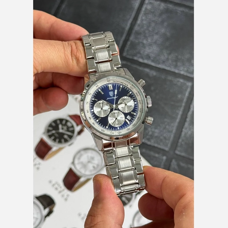 ساعت مچی مردانه پسرانه پوداگار Poedagar اورجینال کرنوگراف ضدآب استیل نقره ای ارسال رایگان