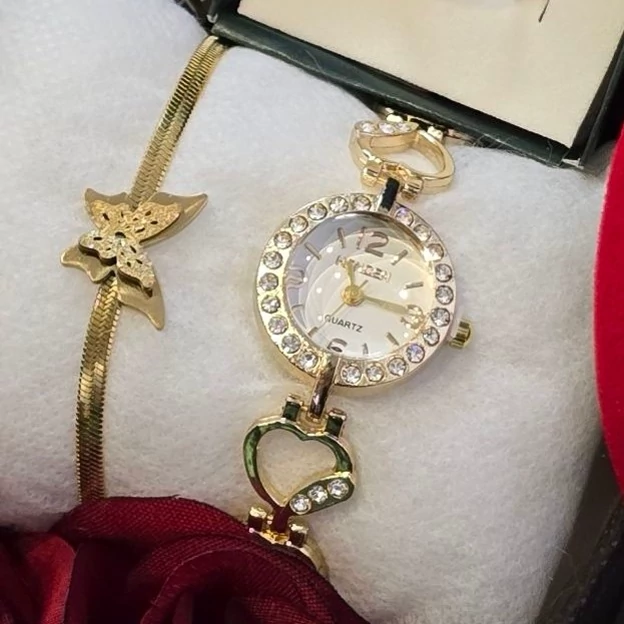 پک کادو هدیه زنانه ساعت و دستبند نیم ست پروانه طلایی