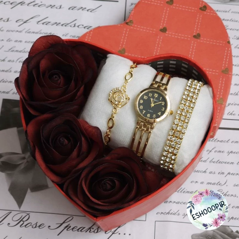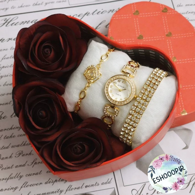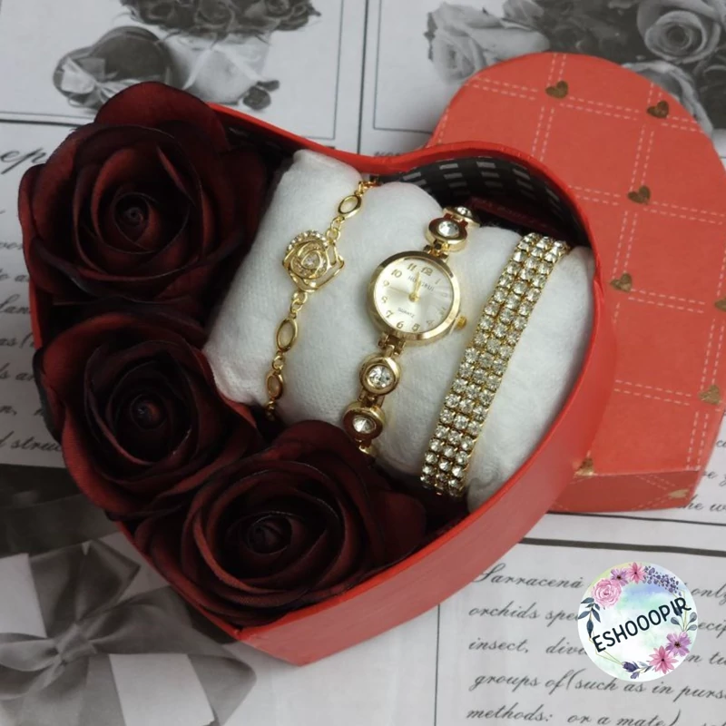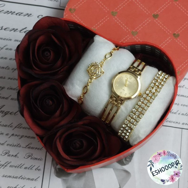 پک های هدیه برای خانم ها 🌹🎁 ⬅️ هر پک شامل : ⌚️ساعت زنانه ✅️ دو مدل دستنبد زنانه زیبا جعبه 🎁 ۳ عدد گل رز 🌹 و پوشال رنگ ثابت ( عطر ، الکل و شوینده نزنید ) در ۵ طرح زیبا ،عکس ها رو ورق بزنید و مدل ها رو ببینید 🎁 مناسب هدیه