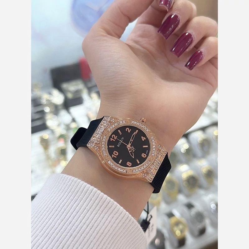 ساعت مچی بولون طرح هابلوت با قاب دور نگین 🎁 بند پیو سیلیکونی با دوام و با کیفیت 🎁 با جعبه هدیه مخصوص ساعت ✅️ مناسب برای خانم ها و دختر خانم ✅️ رنگبندی کامل مشکی ، سفید ، صورتی ، زرشکی ، سبز ، قهوه ای