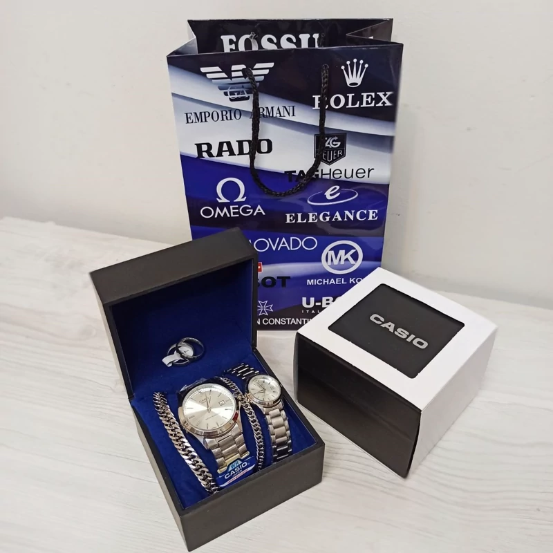 ✅️ست ساعت کاسیو نقره ای با دستبند و انگشتر
