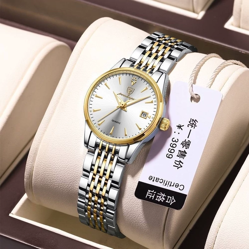 ساعت مچی زنانه کلاسیک پوداگار poedagar ❤️🔥 کار شرکتی و اورجینال از برند پوداگار💎 ✅ تمام استیل ✅ دارای روز شمار ✅ بند دو رنگ(سیلور طلایی) ✅ صفحه سفید ✅ ضد آب (شست و شوی دست) ✅ قفل پروانه ای ✅ رنگ ثابت ✅ موتور کوارتز 🛍️ همراه جعبه کادویی چوبی