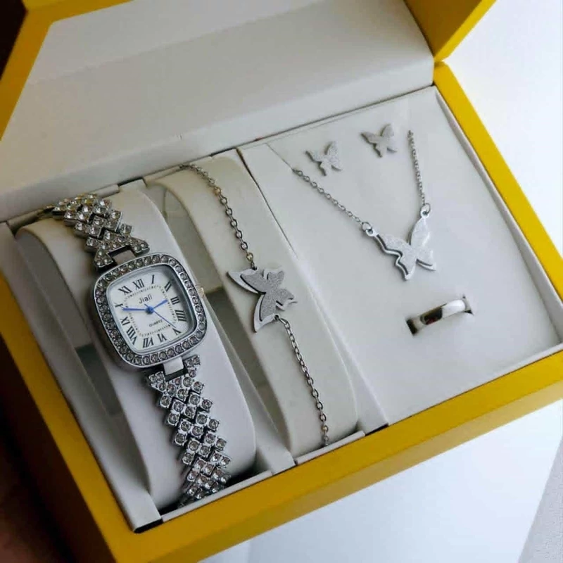 ست ساعت زنانه با دستبند و گردنبند و گوشواره و انگشتر