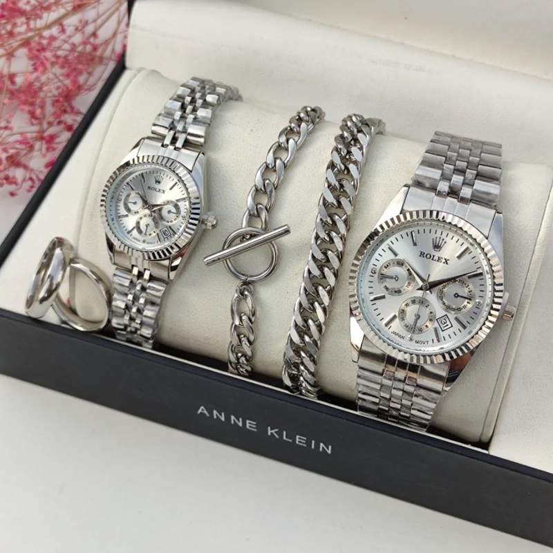 ست ساعت مردانه و زنانه رولکس با دستنبد و حلقه