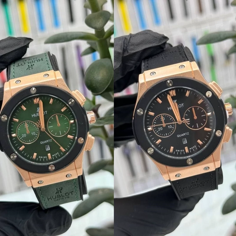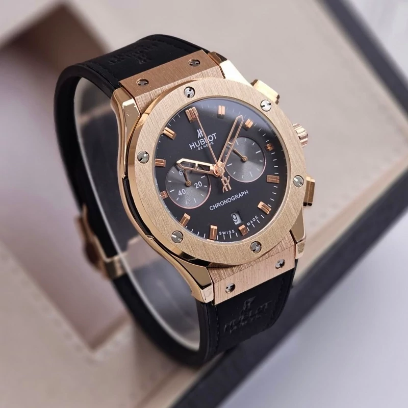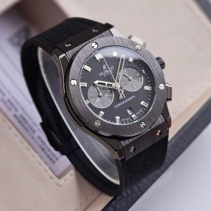 ساعت مردونه هابلوت hublot کرنوگراف سه موتور فعال بند رابر مشکی