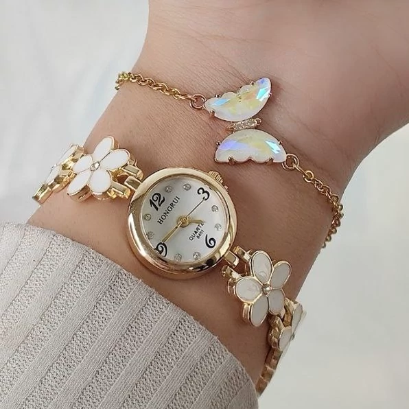 پک کادو هدیه زنانه ساعت و دستبند نیم ست پروانه طلایی