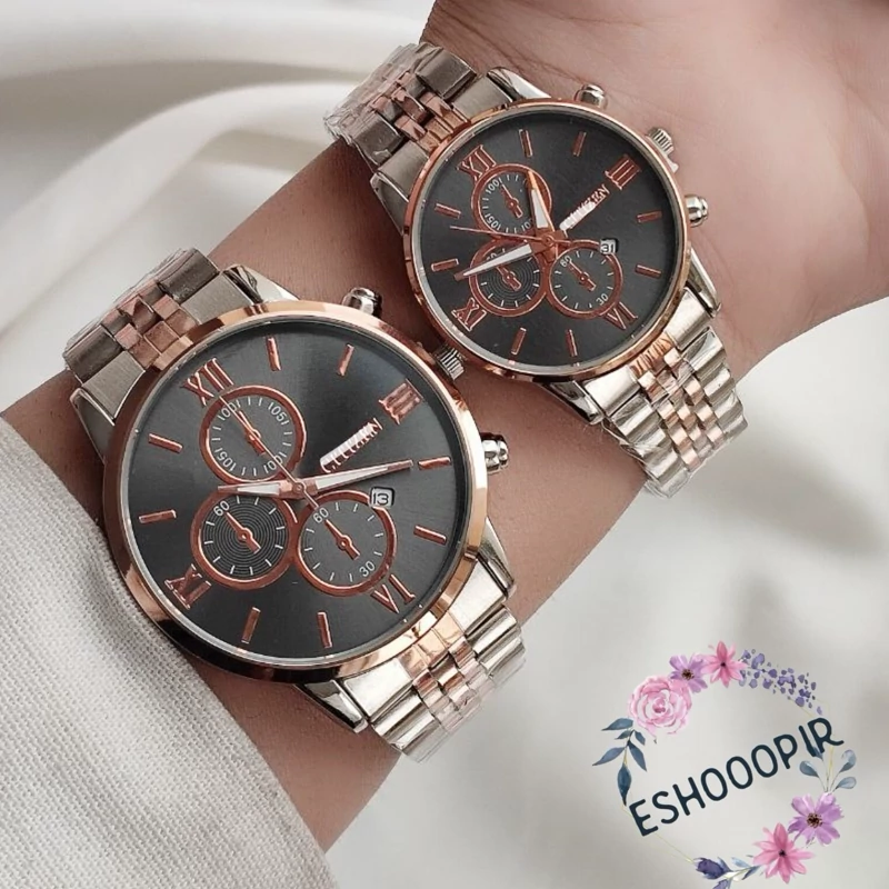 ساعت ست مردانه و زنانه رومانسون رنگ طلایی با کیفیت عالی و تقویم دار