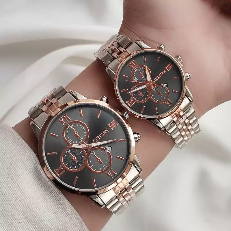 ساعت ست مردونه زنونه سیتیزن citizen با بند استیل مشکی طرح 3 موتوره با تقویم فعال و ارسال رایگان