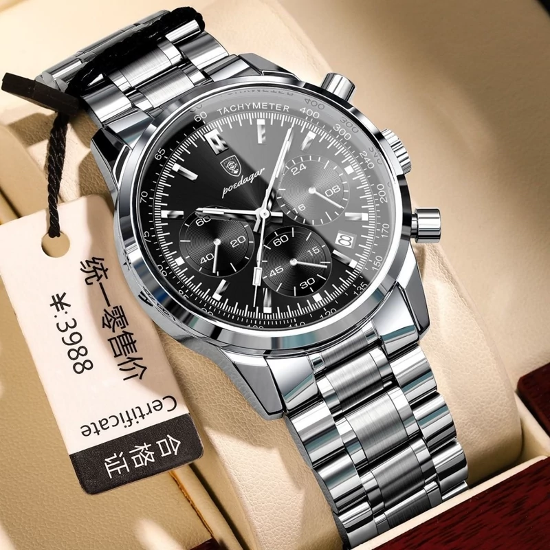 ساعت پوداگار مردانه poedagar اورجینال کرنوگراف ضد آب استیل