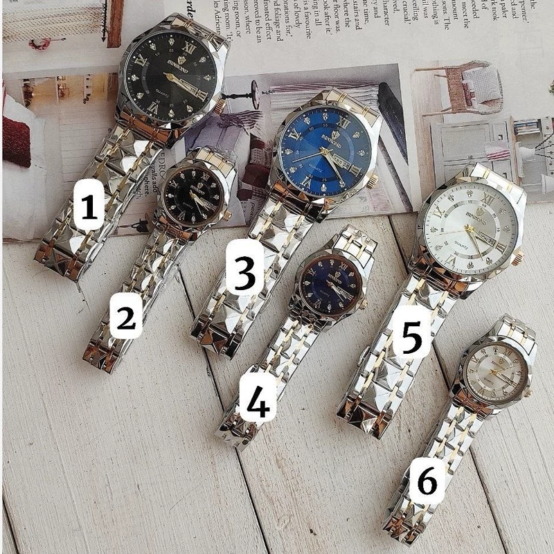ساعت زنانه و مردانه ست طلایی با دستبند و انگشتر برند رومانسون و ارسال رایگان