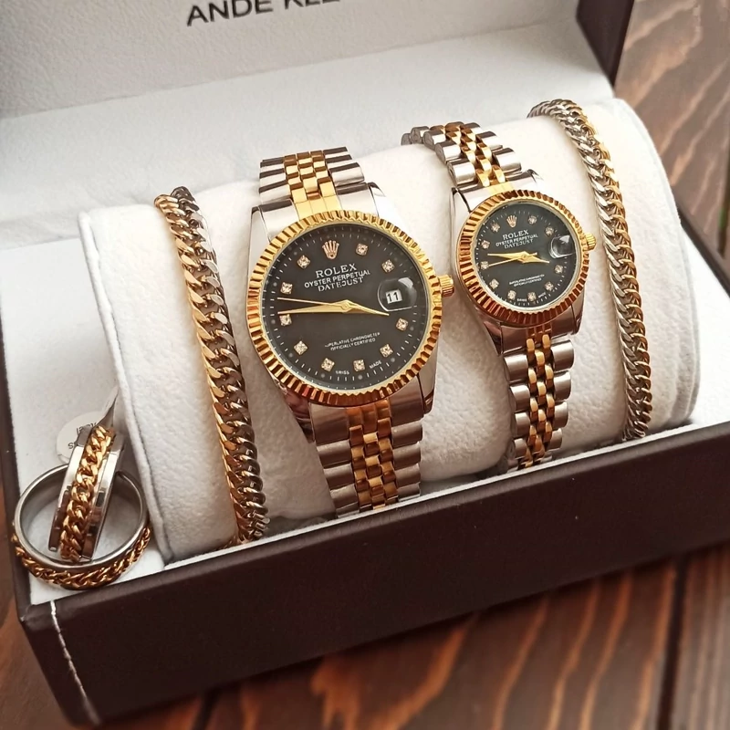 ساعت رولکس Rolex ست مردانه و زنانه با دستبند ست کارتیه و انگشتر ست